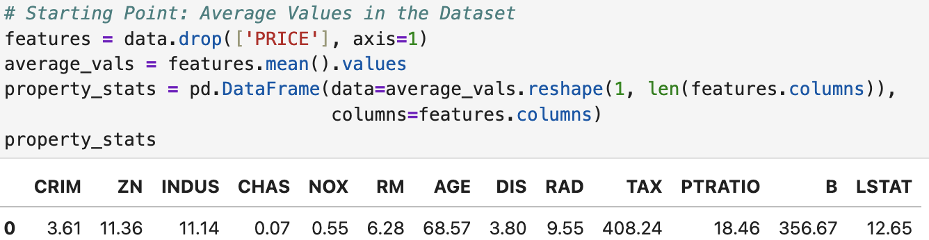 If we average all of the metrics we measure a property's value by in our dataset, we can make a prediction for the price of an average property.