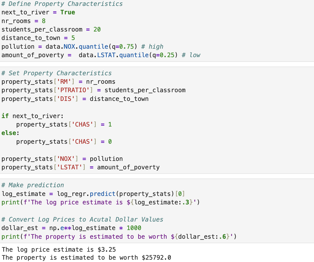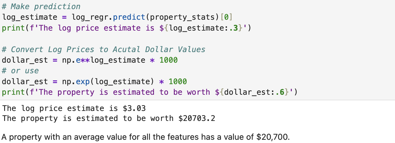 With our new model and coefficients, we can start to predict house prices for given metrics.