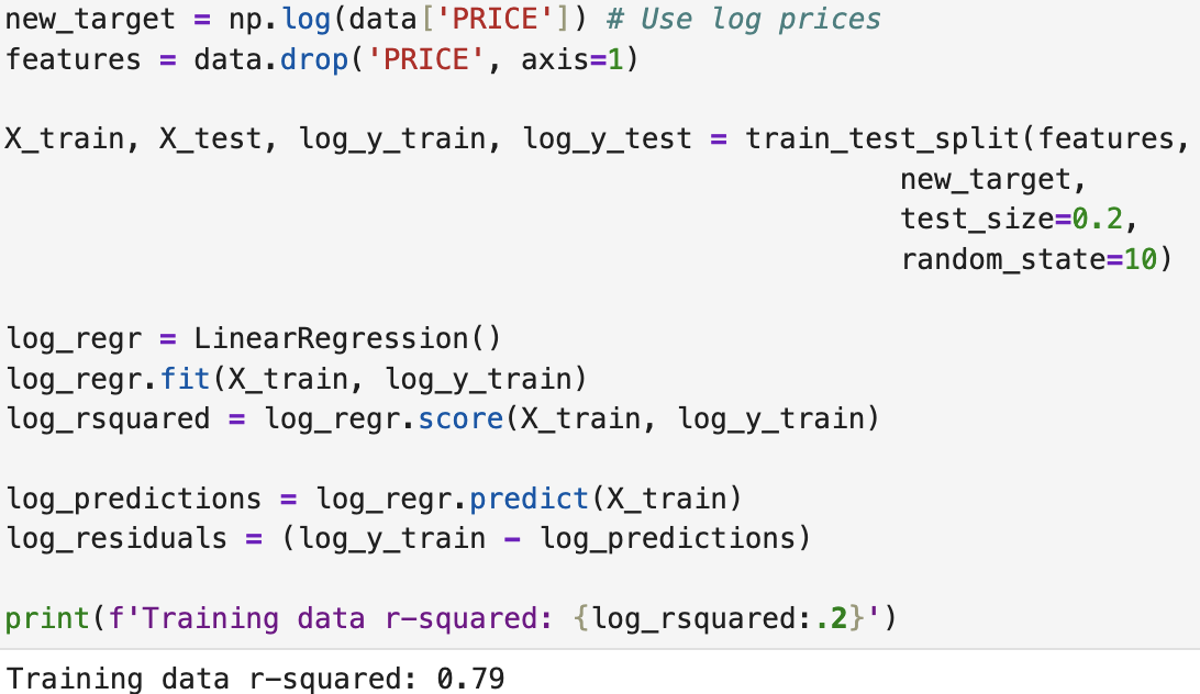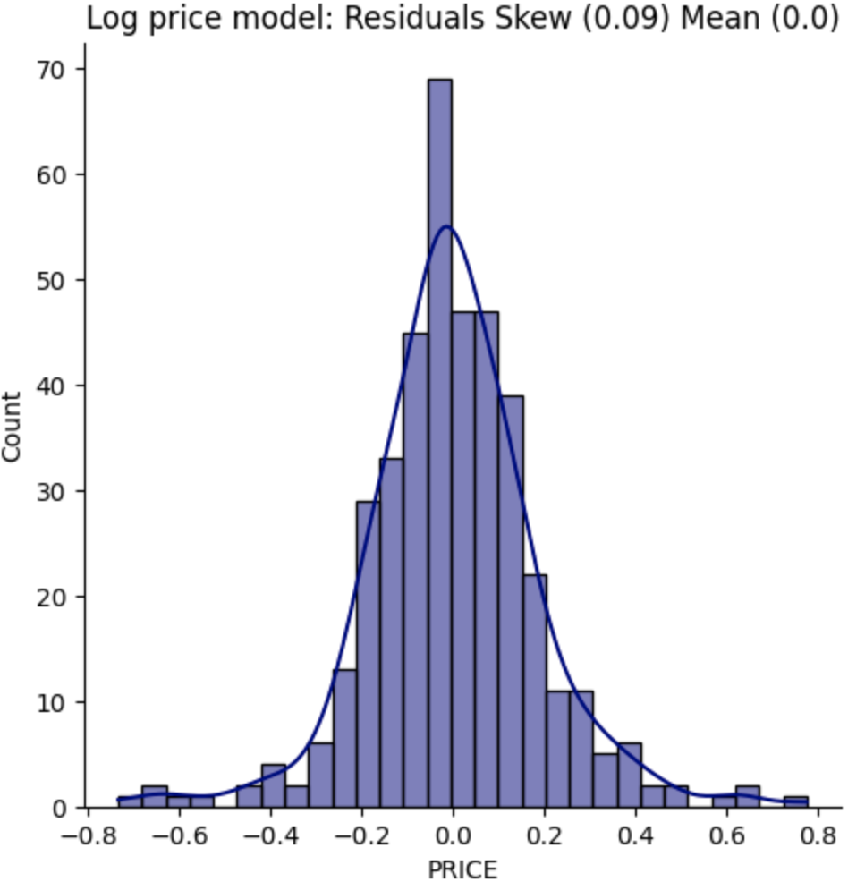 log(PRICE) = ϴ0 + ϴ1RM + ϴ2NOX + ϴ3DIS + ϴ4CHAS... + ϴ13LSTAT