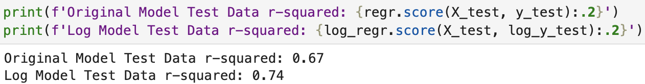 We've made a big improvement on the skew of our model, combined with the R-squared improvement, it seems using a logarithmic approach may give us a better model.