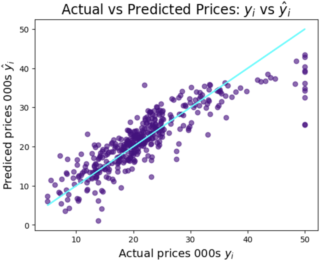One thing we can see from these coefficients, and the equation we have above, is that an extra room in a house in 1970s Boston would add about $3,100 to the value of the house!