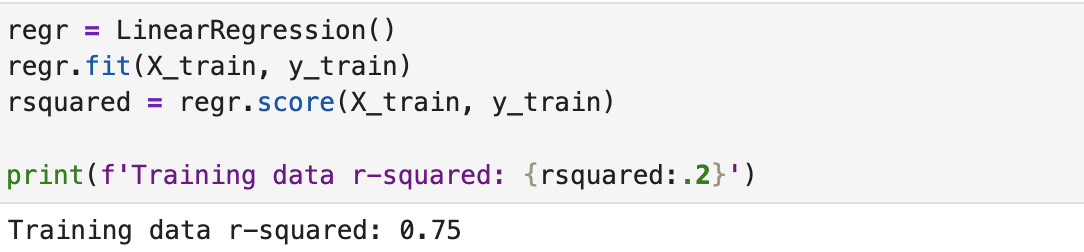 After running regression on the training dataset we get an R-squared value of 0.75. What does that actually mean? R-squared is the fraction by which the variance of the errors is less than the variance of the dependent variable.