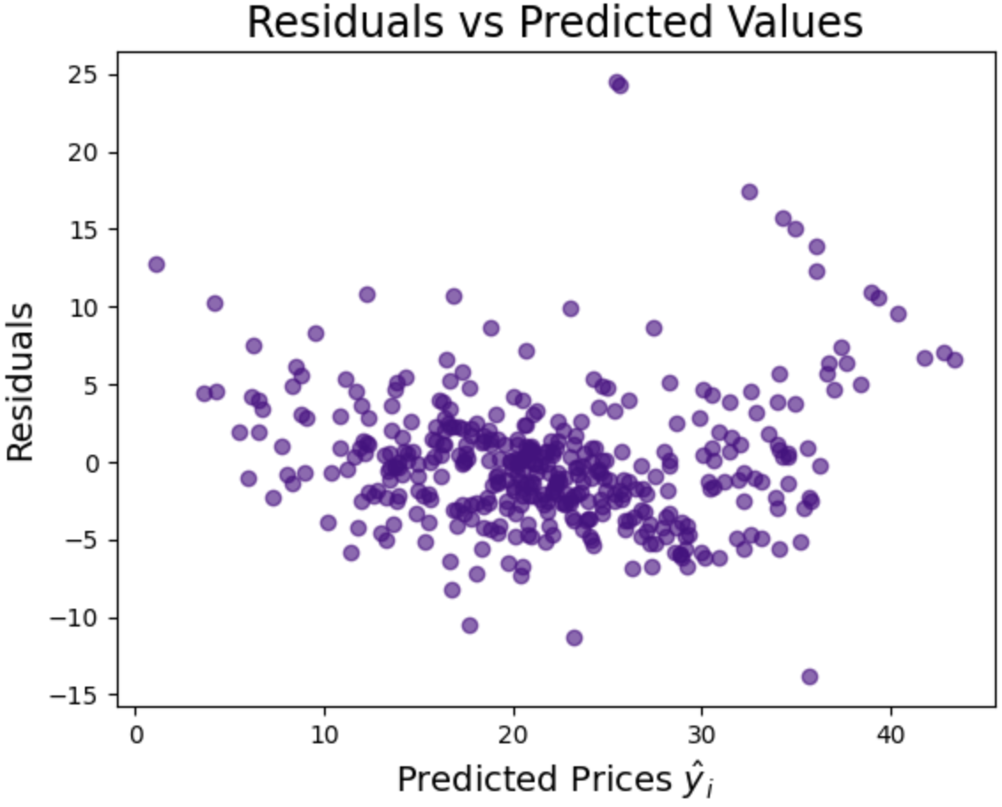 Another means by which we might evaluate our regression is residuals - the difference between the model's predictions (ŷi) and the true values (yi).